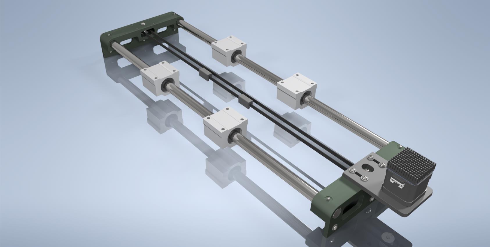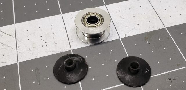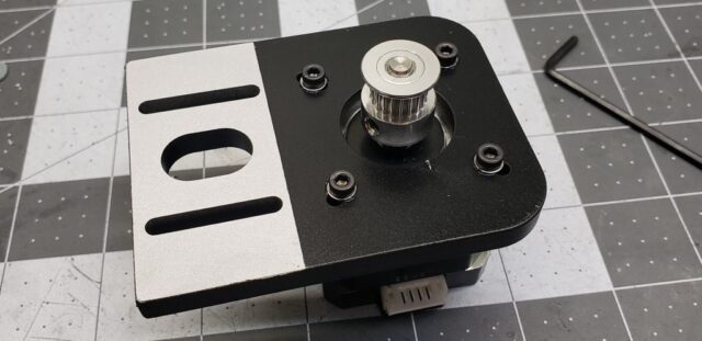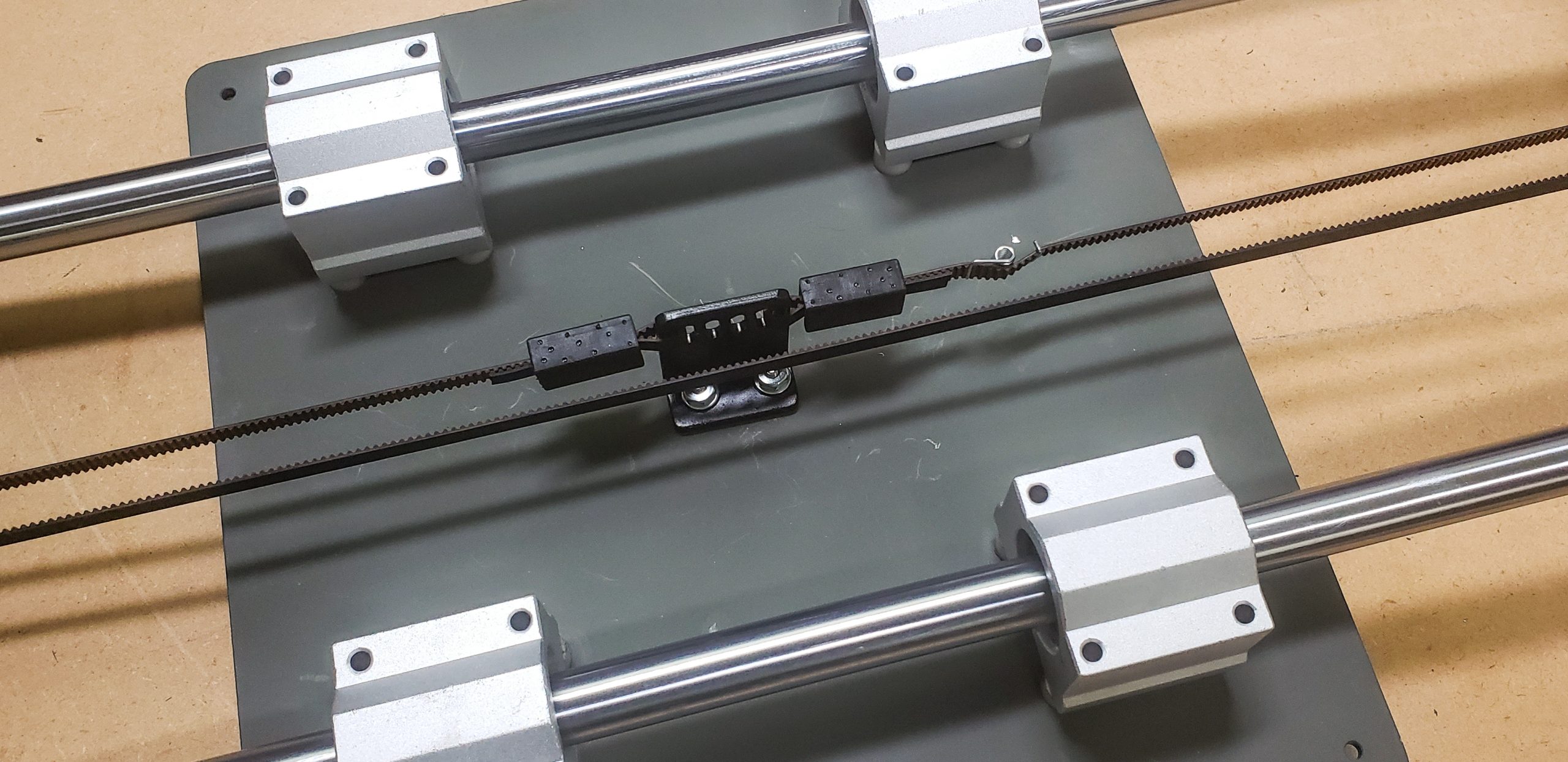 First, the pulley mount is designed so that it’s always vertically aligned with the center of the guide rails. This completely eliminates the need to adjust it for the belt to run parallel to the axis. It simply has no other option.