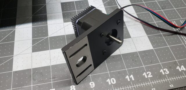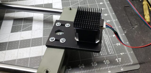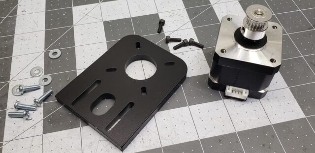 To get this printer axis moving, a motor needs to be attached. For this purpose, the rear mount has threaded holes for securing the motor platform: