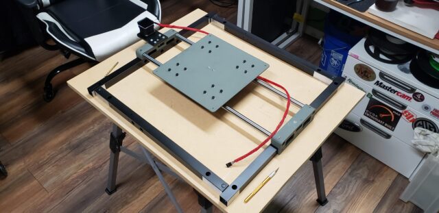 While building the Y-axis, I became convinced that the combination and shape of parts chosen for it were exceptionally successful in terms of structural rigidity. I wasn’t exaggerating when I said that the Y-axis could essentially hold itself together without the frame. For the X-axis, there’s no other choice but to support itself. So, it was built exactly according to the same principles as the Y-axis.