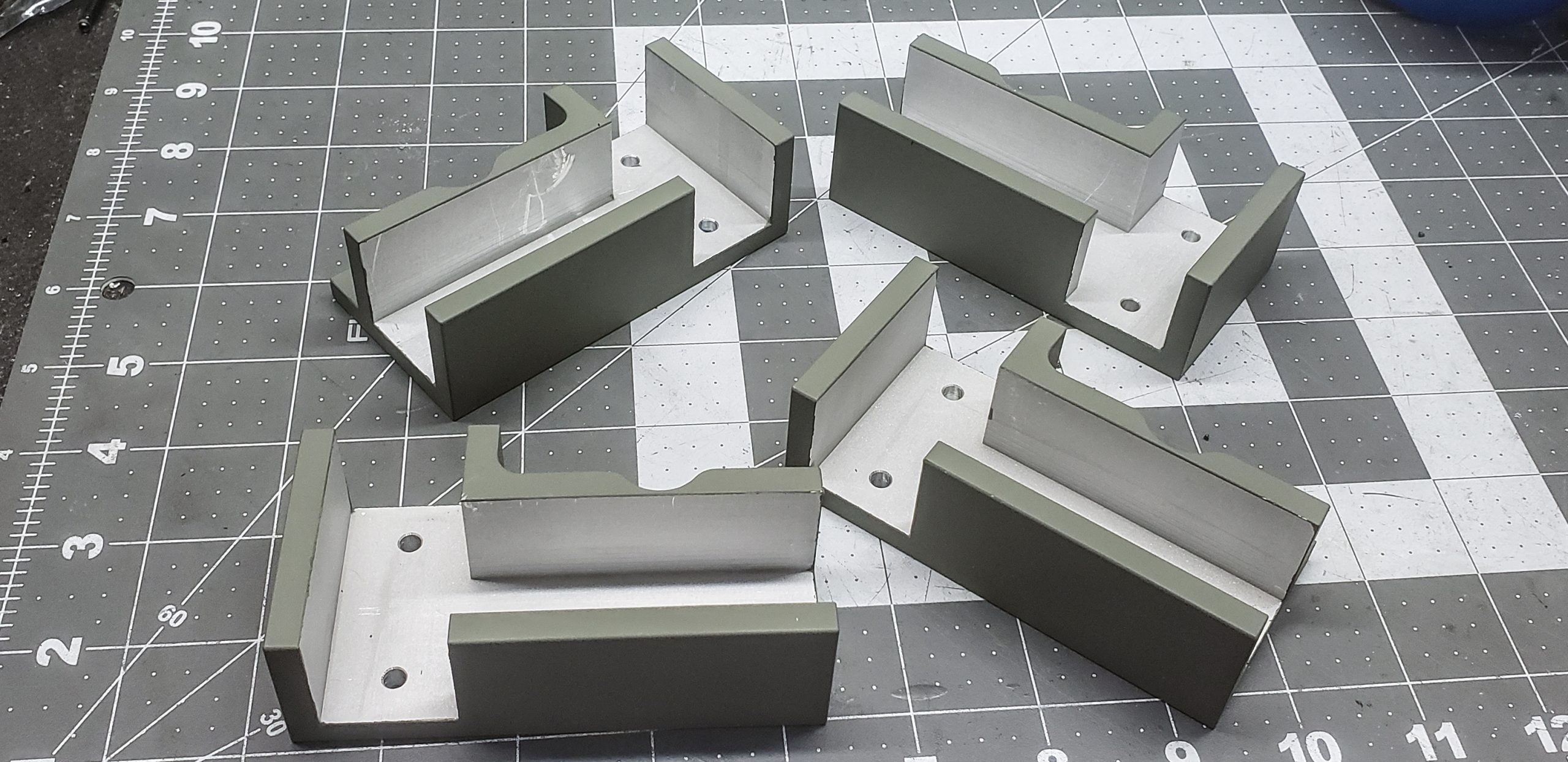 The brackets were cut from the same 1/8-inch aluminum as the base plate for the heated bed: