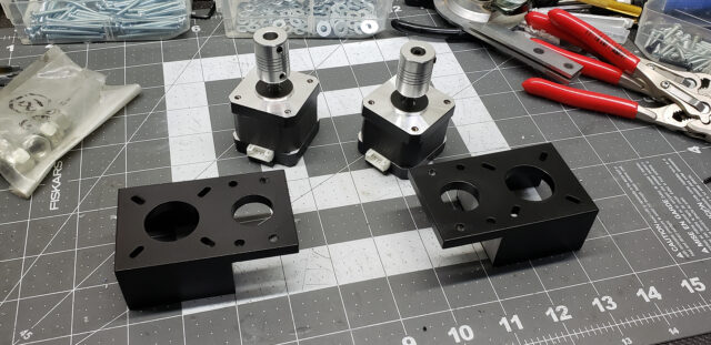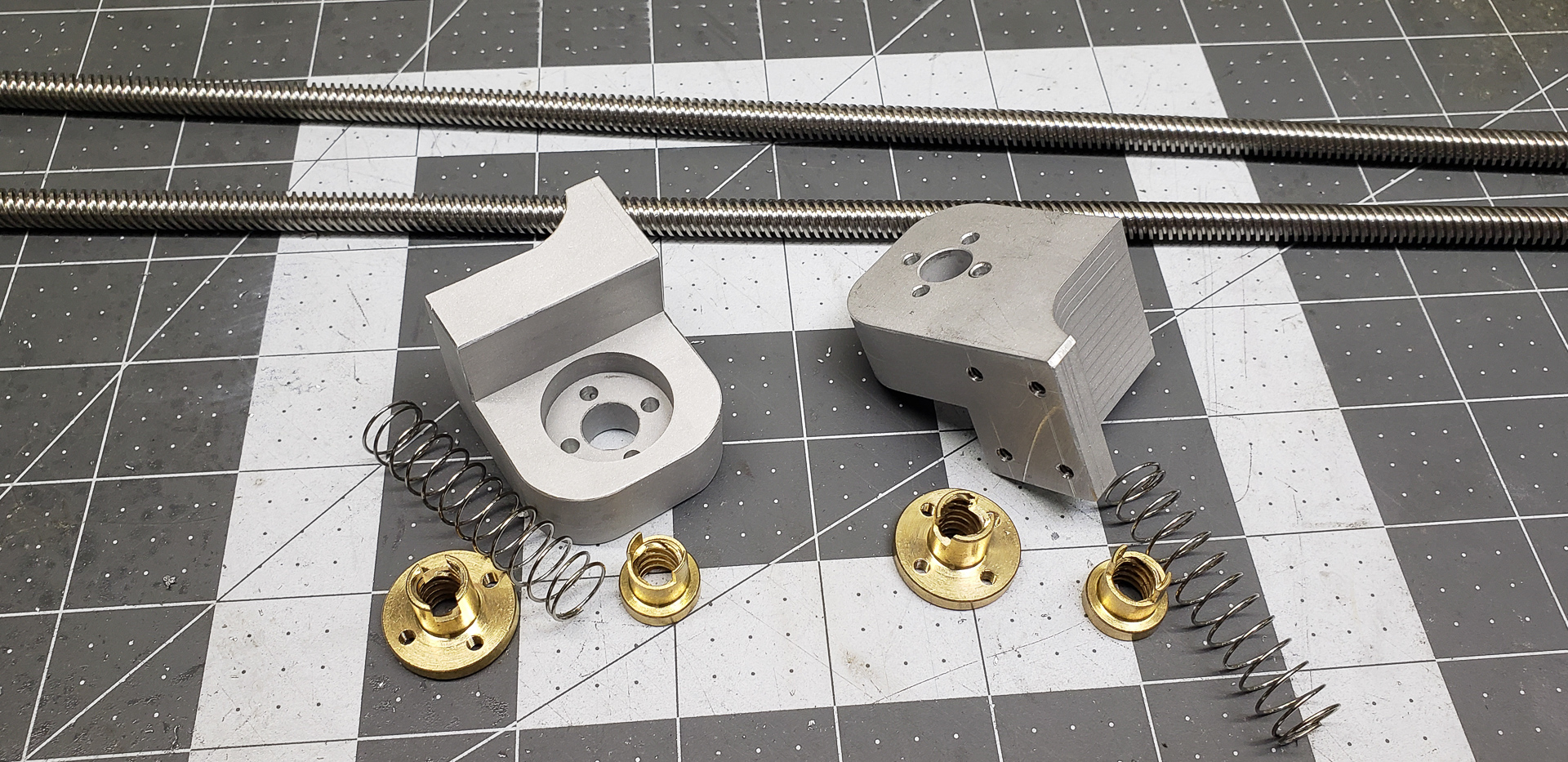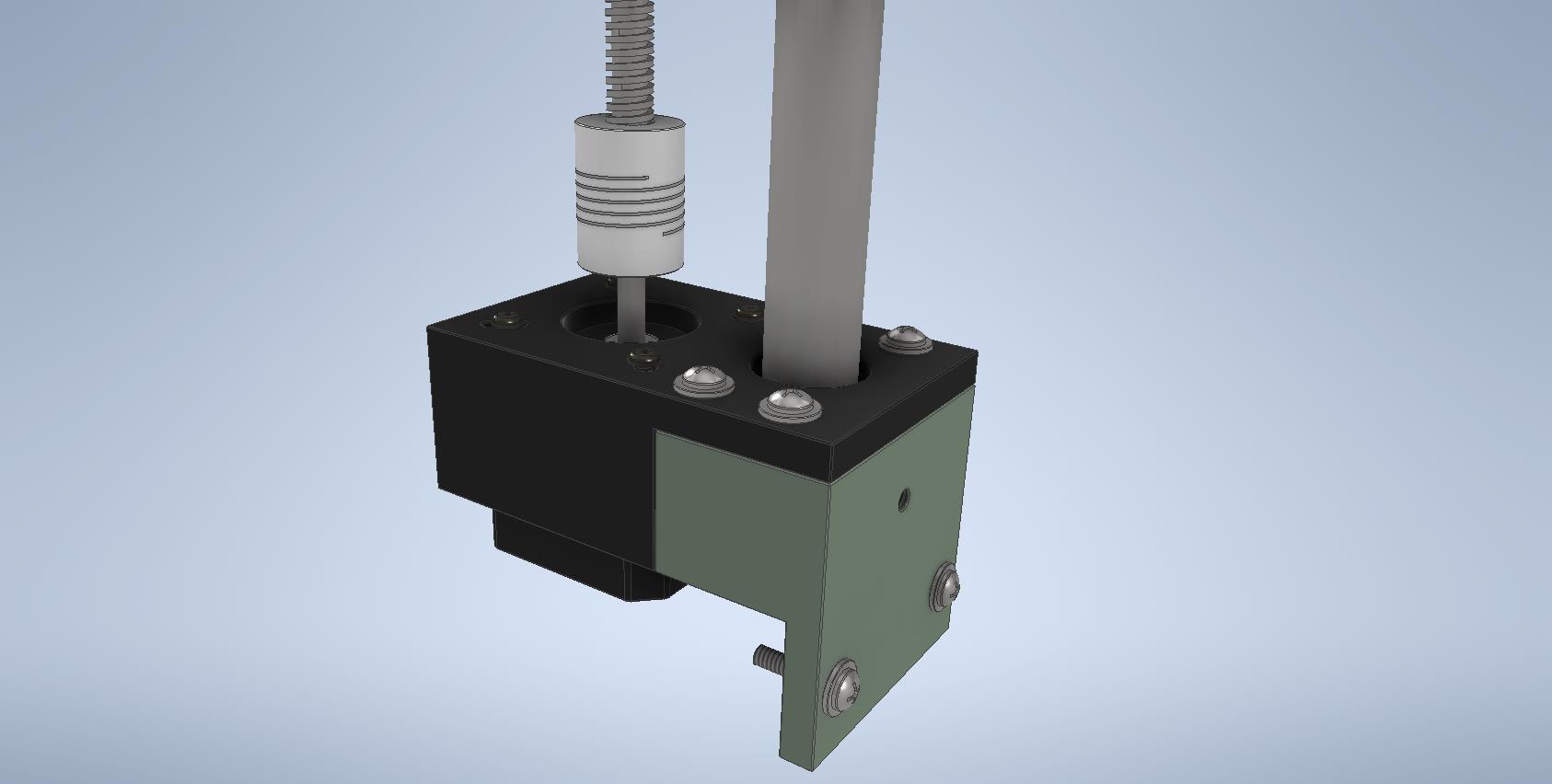 The “motor” section of the Z-axis consists of another set of support blocks, inside which the motors are mounted. These motors are connected to lead screws that will move the X-axis up and down: