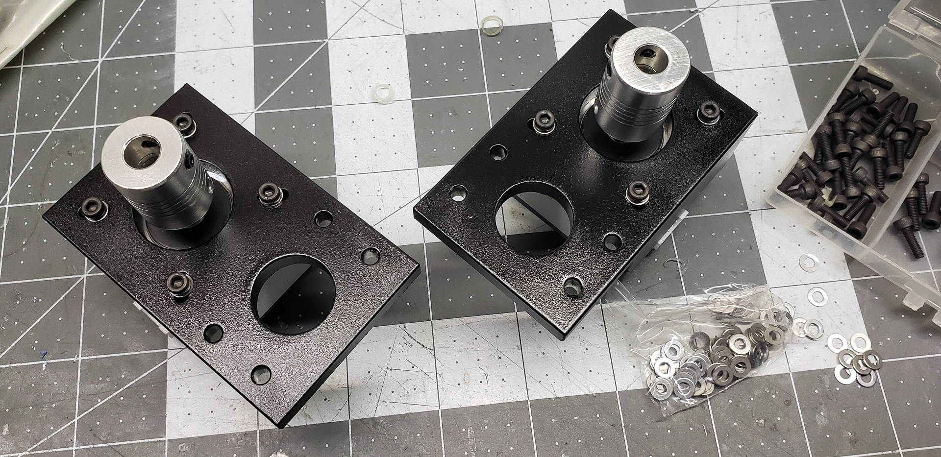 After several tries, I finally managed to get a set of screws that were at least somewhat straight. They still have a slight tendency toward “curvature,” but nothing as catastrophic as the first set. This residual misalignment can be compensated for with these “universal joint” couplings. These allow smooth rotation transfer from the motor shaft to the lead screw, even when perfect alignment is not achieved.
