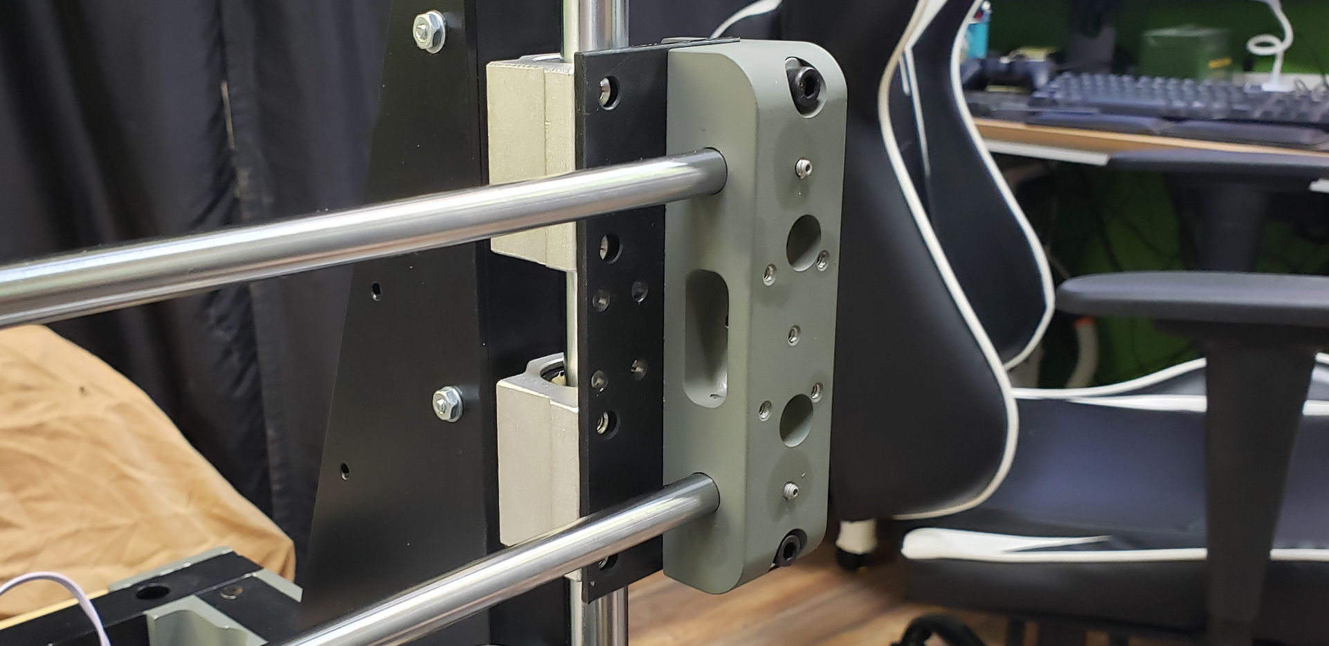 Unfortunately, the supporting part of the Z-axis couldn’t be made as a monolithic block consisting of two guide rails unified by a single mounting piece, as was done for the Y-axis. This is because the Z-axis guide rails are spaced too far apart, making it highly impractical to combine them into one solid aluminum piece.