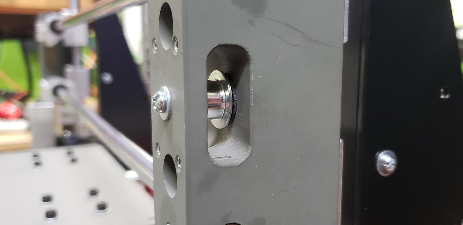 A bearing system of this type is highly sensitive to misalignments, twisting of the rails, and similar issues. Consequently, I never even considered using the standard mounting brackets that come with the rails. You can see them in the photo above — they were only used as temporary stands while I was fine-tuning the bearings.