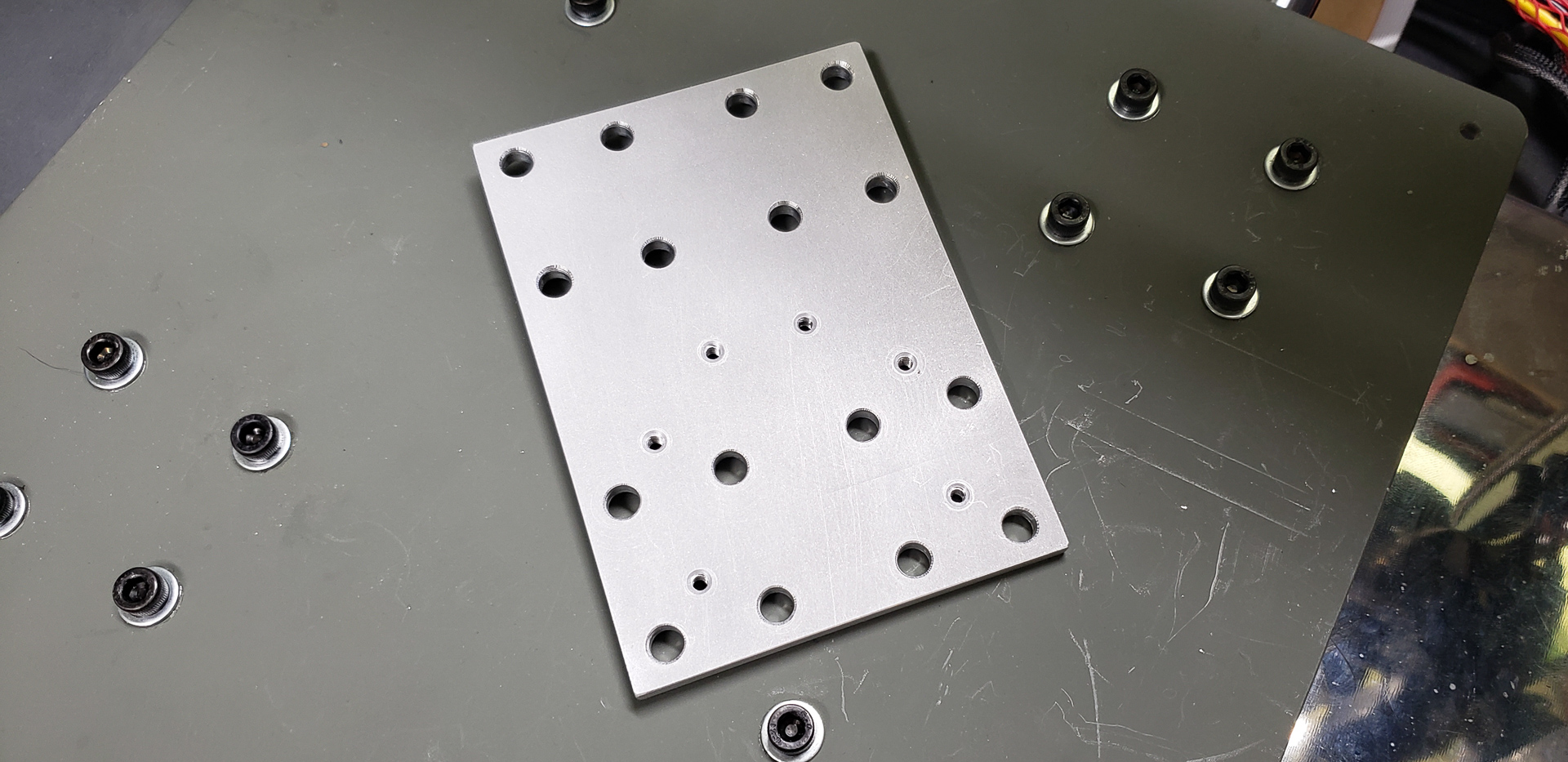Of course, the holes in the plate weren’t drilled at home on a drill press — they were made using the same CNC mill at work. And the result looks quite professional.