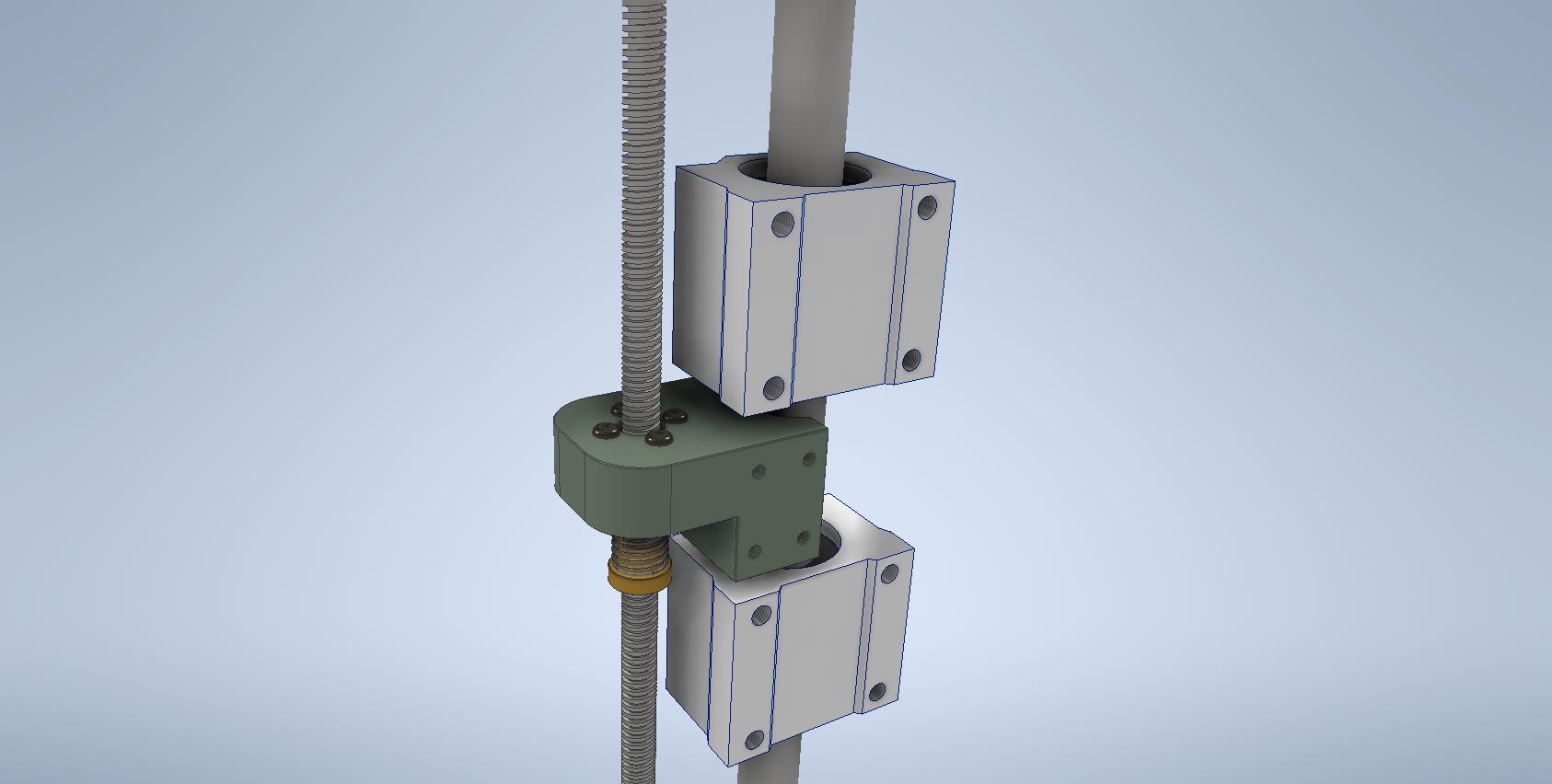 The next part of the structure includes the lead screw nuts, which will move the future X-axis up and down via the motors and lead screws (the green part between the sliding bearings):