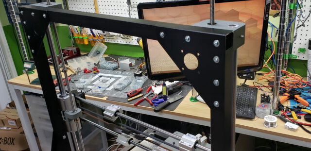 The main load-bearing frame of the printer was constructed in parallel with its motion axes. I don’t see much point in dedicating a separate post to its assembly.