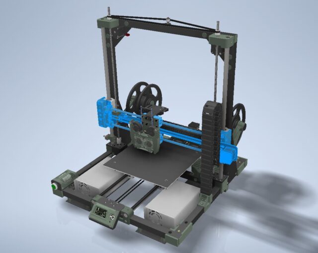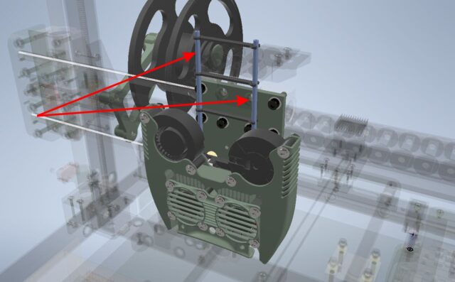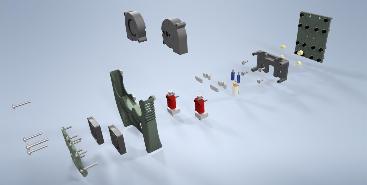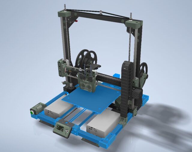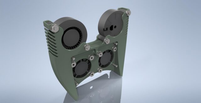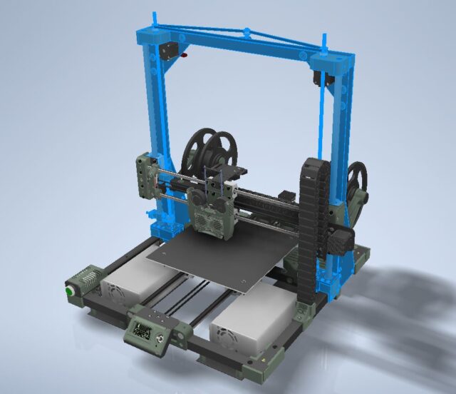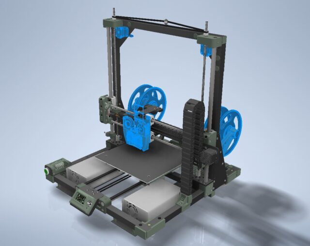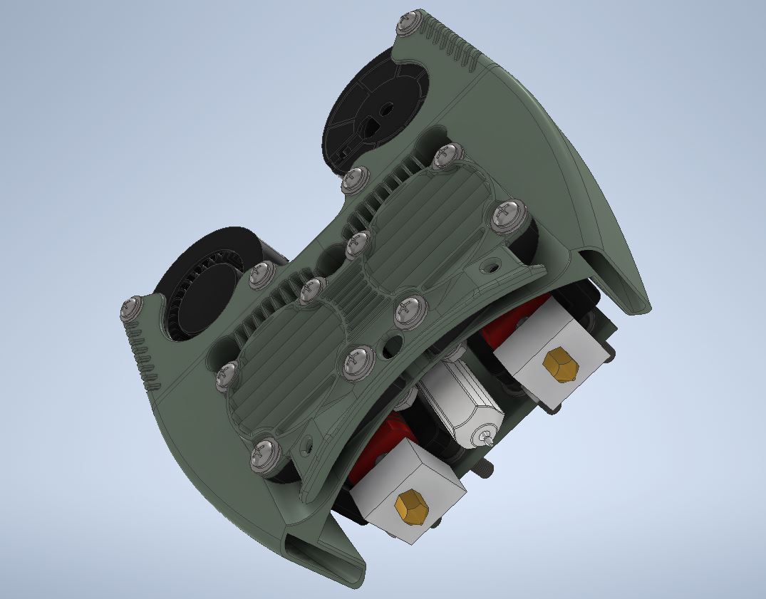 So, in this case, “printing assembly” will encompass not just the extruder and hotend themself but also all the components and mechanisms directly connected to it. This includes the layer cooling system, filament feeding mechanisms, the nozzles with their cooling setup, and even the spool holder mounts on the printer frame.